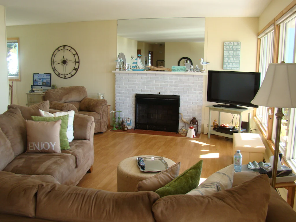 Rustico Harbour House is located in the quaint fishing village of North Rustico. With a panoramic water view and breath taking sunsets . 10 minutes away from 6 world class golf course. With a board walk leading to the beach at one end or Fisherman's Wharf Lobster Supper at the other. The house features a large living room , bedroom one features a queen and bedroom 2 has 2 singles. ( 2 cots also available.) Preferred bookings are Saturday to Saturday .This house is now a year round rental. While restaurants and attractions are closed after October the village still offers walking trails and beaches. If renting in the winter we will accept 3 day minimum stays upon approval.