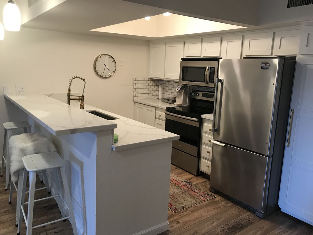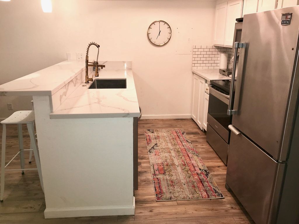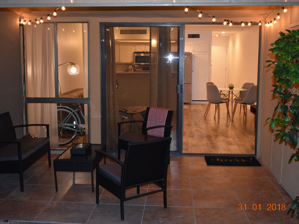 Newly renovated ground floor 1 Bedroom/1 Bath w/ furnished patio. Wood floors, quartz counters, recessed lighting, and new furnishings. Kitchen furnished w/Keurig (coffee, tea, hot chocolate, creamer, sugar) and cooking/eating utensils. Unit comes with 2 beach cruisers, BBQ, yoga mat, tennis racquets/balls- Free wifi/roku TV- Good vibes only, please : )