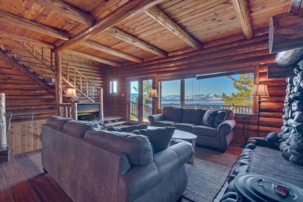 Enjoy your vacation with the best view of Lake Tahoe. This 4 bedroom 3 bathroom 3 story log cabin sits atop Zephyr Heights and has views of Heavenly Ski resort and panoramic views of Lake Tahoe. Relax in the hot tub after a day at the beach or after a day of skiing. There is a BBQ on the deck along with patio furniture, the perfect place to BBQ with the family and watch the sunset over the lake.