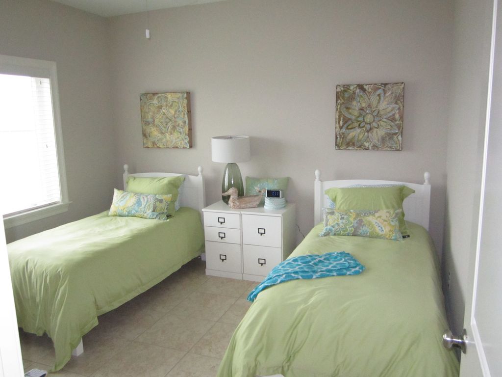 Come and relax in our luxurious, newly constructed home just a stroll away from the Gulf of Mexico, a two minute walk. This 3 bedroom, 2.5 bath is waiting for you along the emerald waters of the Gulf of Mexico with some of the whitest beaches in the world. Our 2100 square foot home has an open floor plan with stainless appliances in a fully appointed kitchen. There are flat screens in every room with Direct TV and Wifi. There are high ceilings and glass all along the front of the house to take advantage of the views. Outside, there is over 850 square feet of decking with patio furniture, a gas grill, and an outdoor shower along with lockable storage below. In that lockable storage, you will find beach chairs and a cart to take all of your stuff to the beach. There is lots of parking including enough for a trailer. Although this house is not fully wheelchair accessible, it is handicap accessible with an external covered lift if you want to bring your elderly parents along. This home is a perfect vacation spot for families and couples of every age and ability. It was built as a house that we would enjoy ourselves and not simply as a rental. It is your home away from home with almost everything supplied that you would normally need. Note: We do not take reservations of less than 5 nights. We also do not do wedding receptions.