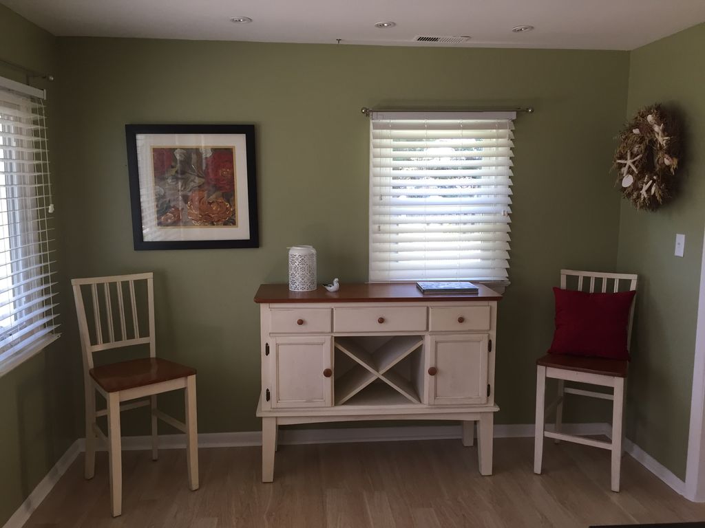 Private house right behind the Washington Inn. 2 bedrooms, full kitchen, living room and dining room. Master bedroom has queen size bed. Second bedroom has twin beds. In the closet, we have a fold up cot if you need one. There's even a pull out couch in the living room. Great for small families or couples. Wifi and smart TVs in both bedrooms and living room.