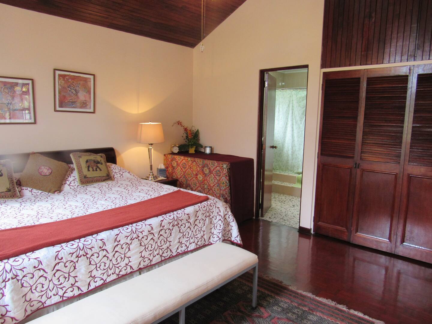 Cariari B&B is elegantly decorated with a rustic style and wooden furniture and has interesting eclectic decor from the host/owner’s personal travels. You’ll be in awe from the moment you walk into the entry with the spiral staircase and high ceilings.