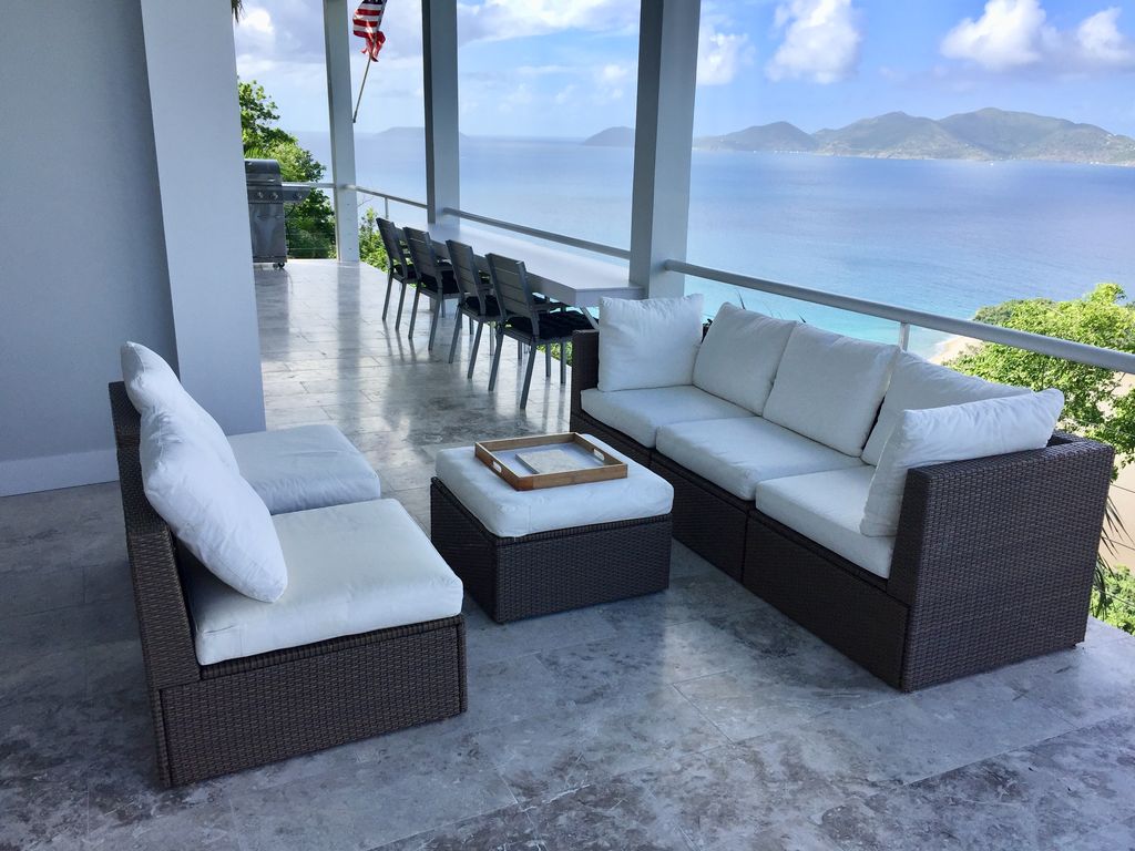 The Villa is set toward the top of the mountain overlooking the sea with stunning 200-degree Views of Jost van dyke, Great Thach, and Sandy Spit. At this elevation and facing north we are blessed with a steady sea breeze. To the east we get a wonderful view of the north shore Tortola coastline. Apple bay, Carrot bay, and Cane Garden Bay, At Night when these small fishing villages are lit it paints a stunning nightscape with the lighting dancing in the sea surf.
