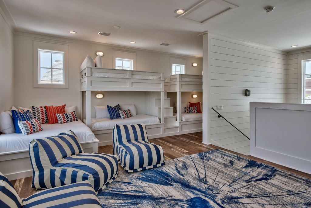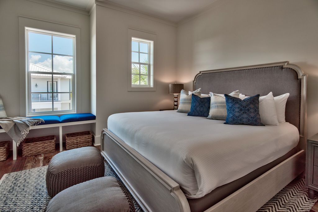 Big Panda likes the beach life with style. In a newly constructed, custom designed spacious Seacrest home a pleasant few steps to Rosemary restaurants and shops, you will find serenity and comfort. 2 king bedrooms with ensuite bathrooms. 2 queen bedrooms with adjoining balcony and shared bathroom. Keep your kiddos happy on the top floor of the house - a gorgeous suite with plenty of room for play and entertainment, featuring built-in bunks which sleep 6 and, of course, their own bathroom.
