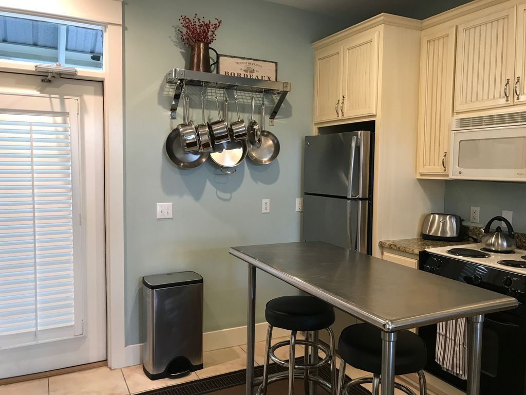 One step inside and you will be delighted with the beautiful decor, fully-equipped upscale kitchen with granite countertops and stainless steel appliances. A separate private bedroom containing pillow-top king-size bed with upscale bedding, MEDIACOM cable TV in living room and bed room, a beautiful dark wood high dresser; and, full adjoining bathroom with bathtub/shower. There are two decks. A private, covered balcony is off the living area with rocking chairs and a bistro table and chairs. Another slate covered patio with table & chairs, wrought iron bench, and gas barbeque is at the private carraige house entrance. A washer/dryer for your personal use is located off a protected area under your slate deck. You can also use this area to store your bicycles under cover if you prefer to bring your own.