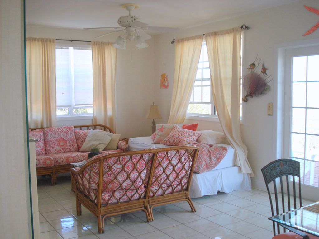 A very spacious house with 1800 square feet inside plus a large wrap around deck.Breathtaking views of the Atlantic and Caribbean ...Experience Great Exuma from the comfort and privacy of the Hummingbird House and enjoy stunning 360 degree views of the colorful waters of Elizabeth Harbor, Master Harbor, Crab Cay and the south side bone fish flats. Soak up the sun and revel in the mild maritime climate of the cays while making this well appointed refuge your own, with space for parties of up to 6 guests. Lush tropical foliage surrounds this centrally located property that offers easy access to the south side water ways, beaches and bone fish flats; take a 10 minute drive to Georgetown or head up the road to Cheater’s restaurant. Or stay in and enjoy the unique open floor plan of the upper floor: a fully equipped kitchen, living room and dining room areas and 2 covered, elevated porches connected by a walk around deck space. The upper floor also contains a single bedroom and half bath as well as a day bed in the living room that sleeps 1 guest. Downstairs you’ll find spacious king and queen bedrooms, each with en-suite bathroom, and the house laundry room. Wake up to the tranquil sounds of hummingbirds and bananaquits that frequent the tropical gardens surrounding the house.
