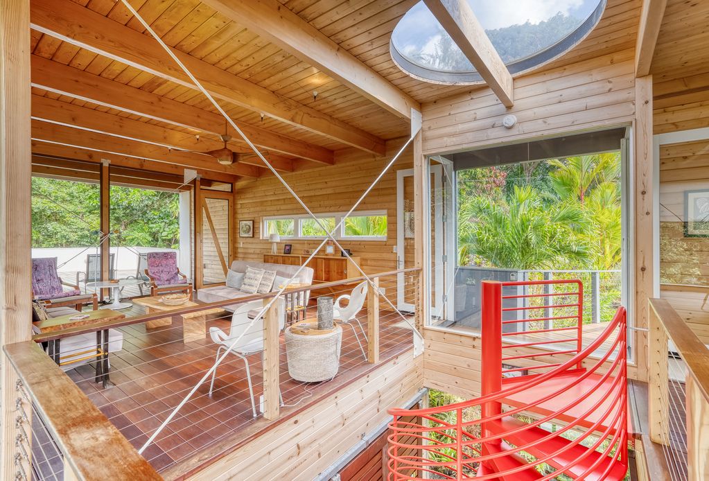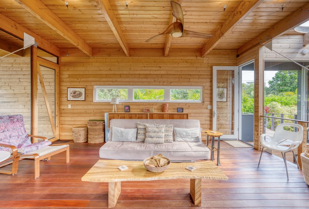 This home sits three-quarters of a mile north of the black sands of Kehena Beach (please note that this beach is clothing-optional), where dolphins are known to come by and frolic with swimmers. You\'ll be 10 miles down the coast from a spectacular surfing beach at Pohoiki, a 20-minute drive from popular restaurants like Paolo\'s, Ning\'s and Kaleo\'s, and 90 minutes by car from Hawaii Volcanoes National Park. The bustling town of Hilo, 32 miles north, is home to many shops, restaurants, and sources of entertainment as well.