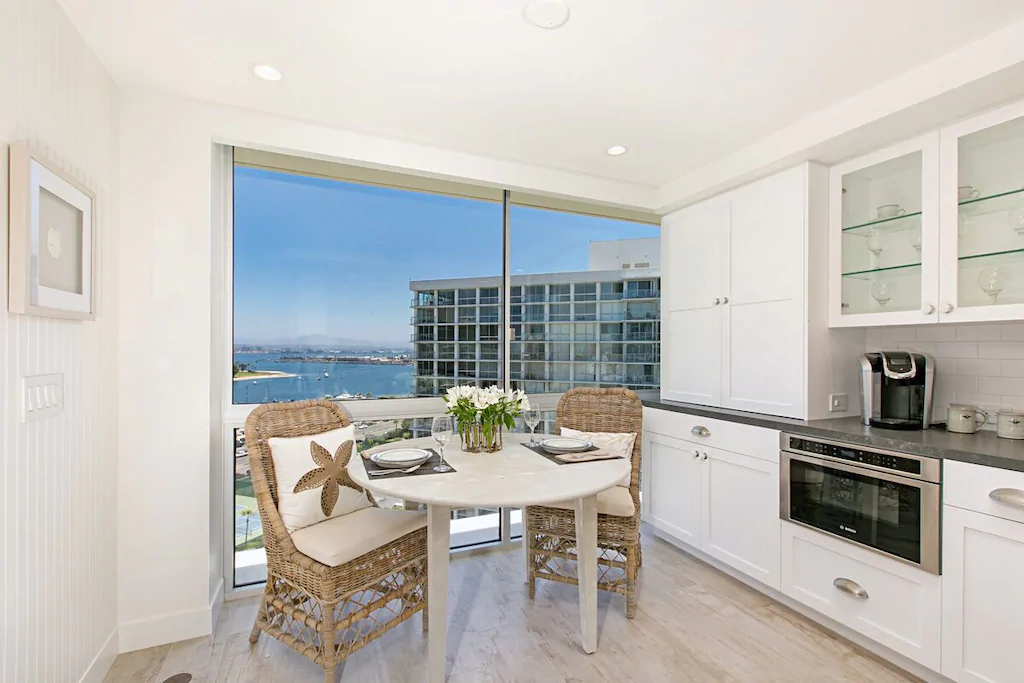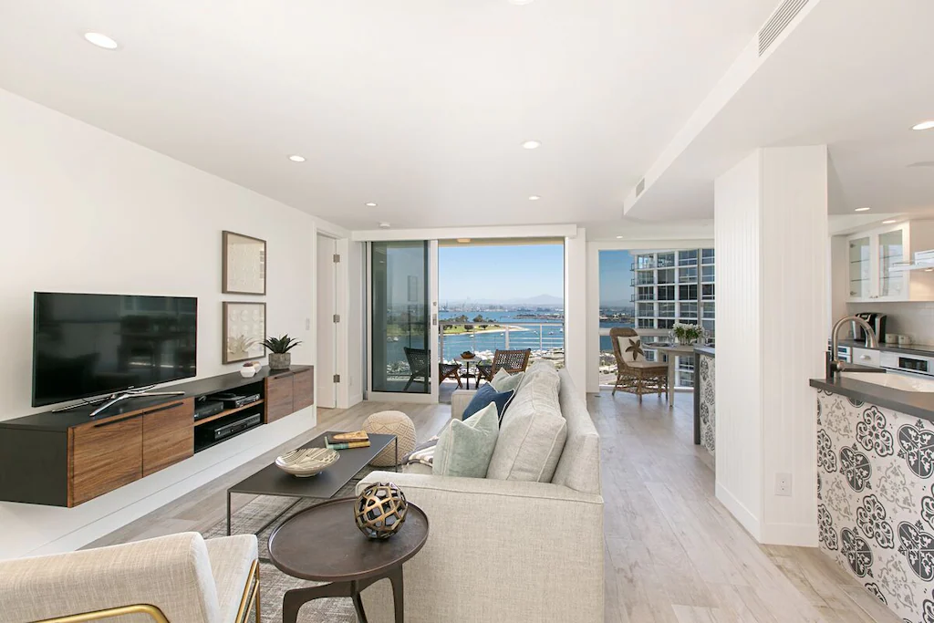 A truly remarkable opportunity to rent a rarely available unit in the sought after La Sierra Tower. Michael Roy\'s creative design delivers a spacious one bedroom unit with two full bathrooms, a queen pull-out sofa plus a large balcony offering outdoor seating and dining while enjoying panoramic Bridge and Bay views. The completely remodeled and redesigned unit features quartz counters, porcelain floors, custom cabinetry, top-of-the-line appliances and fixtures plus double power shades. Rental ready for on the beach!!