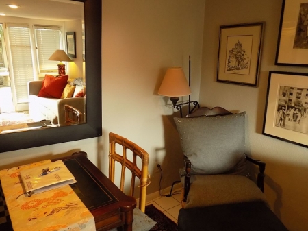 The Comforts of Home; fully equipped kitchen, major appliances. Grab the blender, whip-up frozen drinks…let the swimsuits air-dry after a day at the beach…tune up your mixology skills as you decide what new venue to visit – It’s travel made easy for an overall better vacation experience. Walking distance to shops, restaurants, boutiques and surf areas, this lovely beach Cottage is a tranquil and serene vacation rental. Flowing vines, amazing artwork, meditative settings and lush settings surround this property.