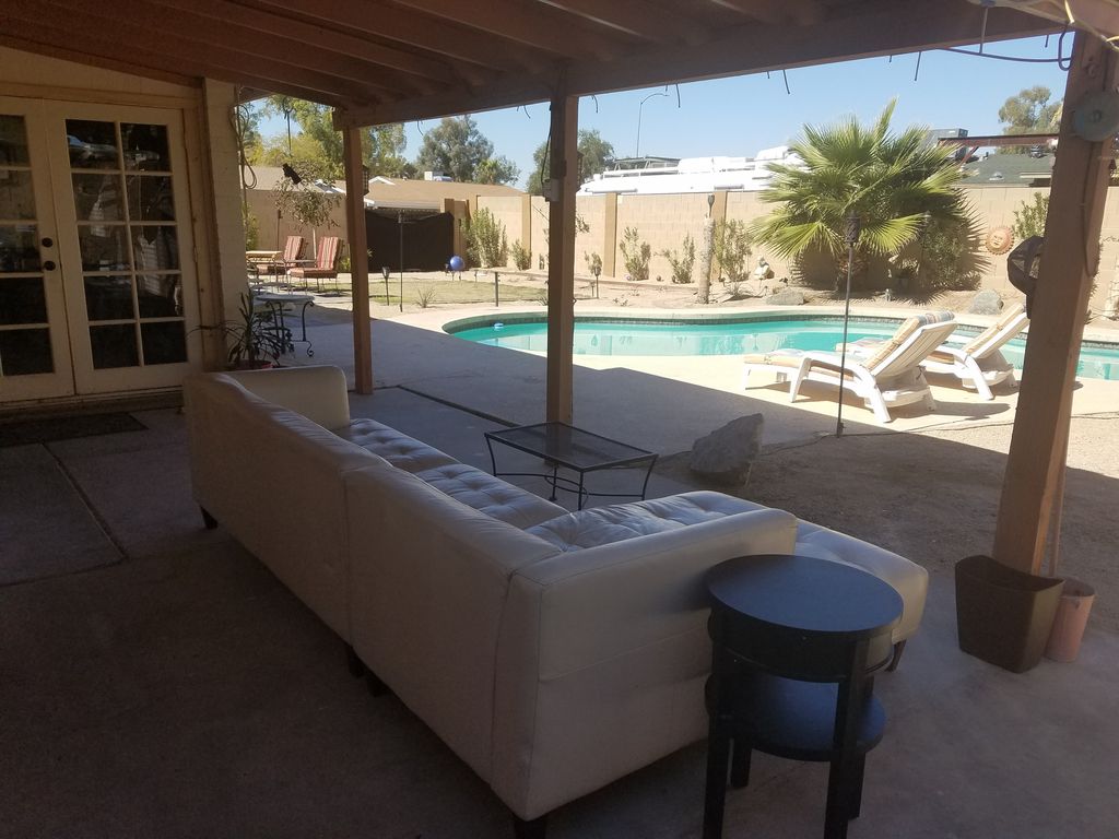 Clean, updated three-bedroom two-bath house on corner lot with large backyard. Just a few walkable blocks to Chicago Cubs baseball stadium Sloan Park. Close to ASU, Mill Avenue and Old Town Scottsdale. Close to bike path that connects to Tempe Town Lake and Scottsdale Greenbelt. There are two malls very near, Tempe Marketplace and Riverview Mall.
