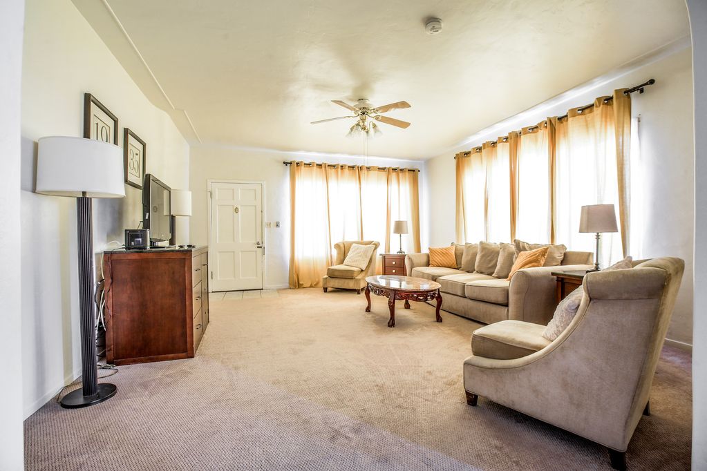 Our home sits right in front of the Historic LDS Temple in Mesa. Very upscale location and accessible. 5 mins away from Center Street in Downtown Mesa, Historical Museum and Mesa Arts Center. One block from the Main Dr/St and Light Rail Station.!