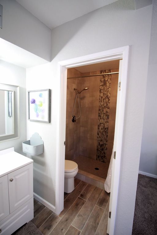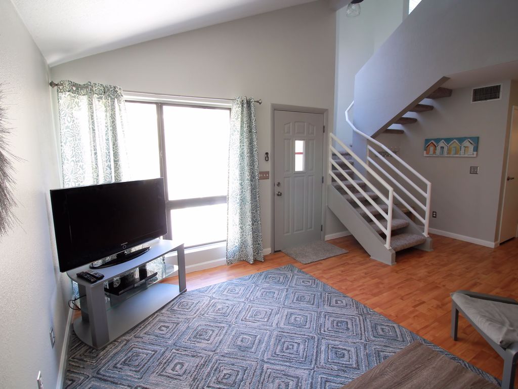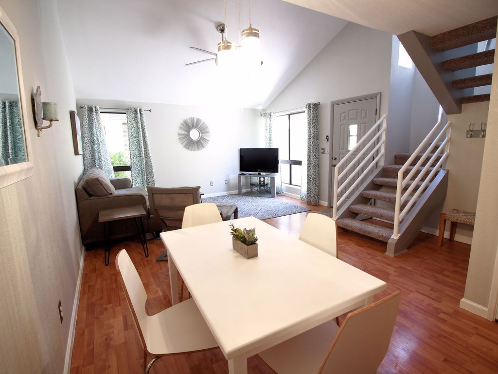 Beautifully updated 2 bedroom/2 bathroom condo. The upstairs lofted bedroom has a queen bed and mounted 40 inch flat screen tv. There is a walk-in closet and a completely renovated master bathroom with walk-in shower. The downstairs bedroom has two xl twin (80 inch) beds with two closets and a desk. The bathroom is right next to the bedroom and has a shower and tub. The downstairs is an open floor plan. The kitchen has a full-size stainless steel fridge with a counter height bar with three bar stools. The living room includes a comfortable couch and chair with a 40 inch flat screen tv and blue-ray dvd player. The complex has a big pool and two Jacuzzi tubs. It\'s walking distance to Udall park, restaurants, a grocery store, and lots more. It\'s close to Sabino Canyon, U of A, and a short drive to Mount Lemmon. Please feel free to ask any questions.