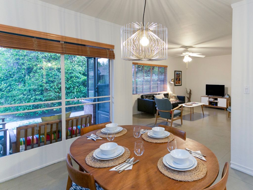 The bungalow has been refurbished and features a mid-century modern design that is sleek and sophisticated, yet warm and inviting.