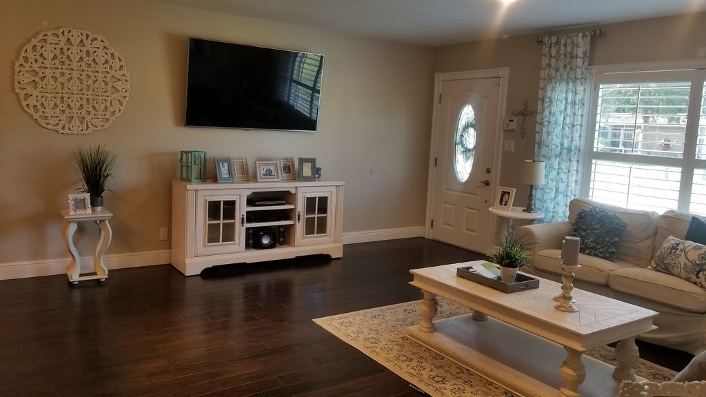 Our vacation rental is a 3 bedroom 3 bathroom pool home located in Apollo Beach, Apollo Beach is a quiet waterfront community that provides year-round boating, fishing and other water activities. The home is newly renovated with a new and upgraded fixtures and stainless steel appliances and a caged salt water pool that is heated seasonal from December to March with an LED color changing light . The master bedroom has a king size bed, a private en-suite bath with a Jacuzzi tub and separate stand up shower with a sliding door that leads to the pool. The 2nd and 3rd bedroom have queen size beds. There is a 55 in flat screen TV in the living room and there is also an about a 50 in flat screen in the master bedroom and a 32\" tv in bedroom 2 Also included is internet WiFi and cable. Enjoy a day at the manatee viewing center just 2.1 miles from the home or just sit back and relax and enjoy the sunsets that all the locals love just 2.5 miles away. Disney and other attractions in Orlando are just over a hour away and a 30 min drive to Adventure Island and Busch Gardens. Florida Beaches are 30 to 45 minutes south and southwest