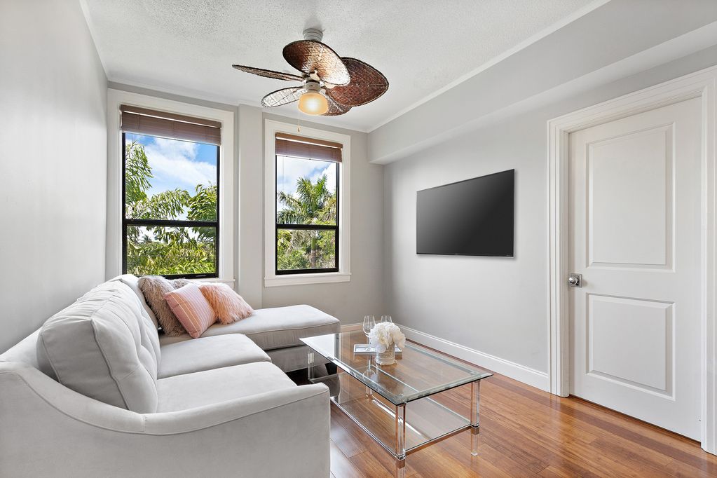Welcome to the Luxury Two Bedroom Suite at Palm Beach Hotel! This two bedroom two bathroom suite features high end furnishings throughout, beautiful views, luxurious linens and towels, hair and body products, two soaking tubs, copious closet space, and a fully equipped kitchenette. Featuring a striking contemporary renovation and brand new fashionable furniture imported from Italy, this bright two bedroom two bathroom suite with views is sure to impress even the most discerning guests. The split bedroom layout maximizes privacy and convenience for guests. Both bedrooms offer an en suite full bathroom with a soaking tub, copious closet space with hangers, a dresser, a television, an air conditioning unit, two oversized windows, and exquisite bedding. One bedroom features a queen bed set, and the second bedroom offers two twin beds. The living room features a queen size sleeper sofa, glamorous coffee table, and large screen television. The fully equipped pass-thru kitchenette features a granite breakfast bar, refrigerator, microwave, toaster, full size Keurig machine, elegant utensils and cutlery, and chic drink-ware and dinner-ware. Luxurious linens and plush towels are provided, as well as Dove skincare and hair care products, K-cups, free wi-fi, ceiling fans in all rooms, paper towels and bathroom tissue. The full service amenities of the hotel include a full time doorman, concierge, coin operated laundry facilities, fitness center, beauty salon, and outdoor swimming pool!