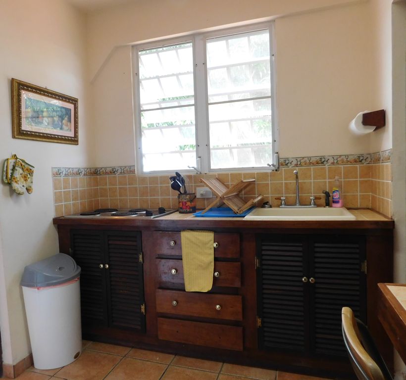 Located 50 feet above the oceans with a fantastic view to the West and wonderful sunsets, probably one of the nicest views on the West coast and on occasions in the winter you can see whales from the balcony. It is close enough to be able to throw a mongo into the oceans from the yard but with a good arm. The apartment has everything you would need for your stay A/C, BBQ, cable TV ,Internet and hot water, only need to bring your food and you have use of a washer and dryer. It is a two minute walk down the hill to a really nice beach which is much calmer than the North part of Rincon. The swimming is excellent and the sand never washes away. There is a fishing village there where you can buy fish a lobsters directly from the fishermen. A bit further down the beach is a little beach store right on the beach and you can buy beers for 1.25 and fried pies (Empanadilla) for 1.00.The neighborhood is very Puerto Rican and most everyone is family and we are not in the tourist area. You have you own parking space. The listing rated as four is for a family as there is only one bedroom