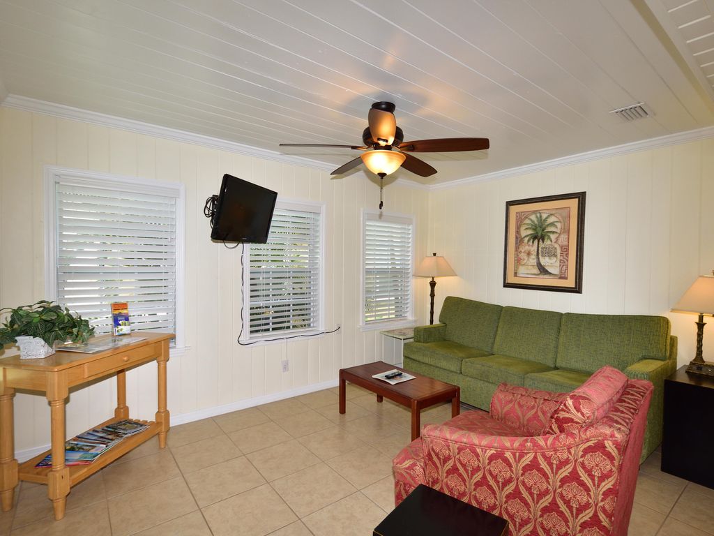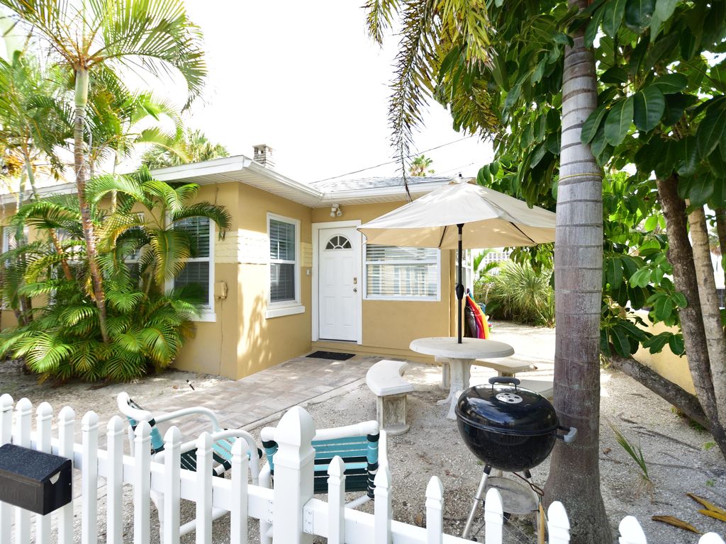 Come enjoy this 2 bedroom 1 bath cottage that sleeps 6 people with sleeper sofa. A great place for families to enjoy a very safe beach. It\'s within walking distance of many restaurants, shops, marina and Pier 60. That\'s where you celebrate the sunsets every evening while enjoying various entertainment, like outdoor movies on the lawn, large air filled slides right on the beach, street performers, music and artist selliing those gifts to take back home, and of course there are plenty of food vendors. It\'s a perfect place to have that family fun for those lasting memories,