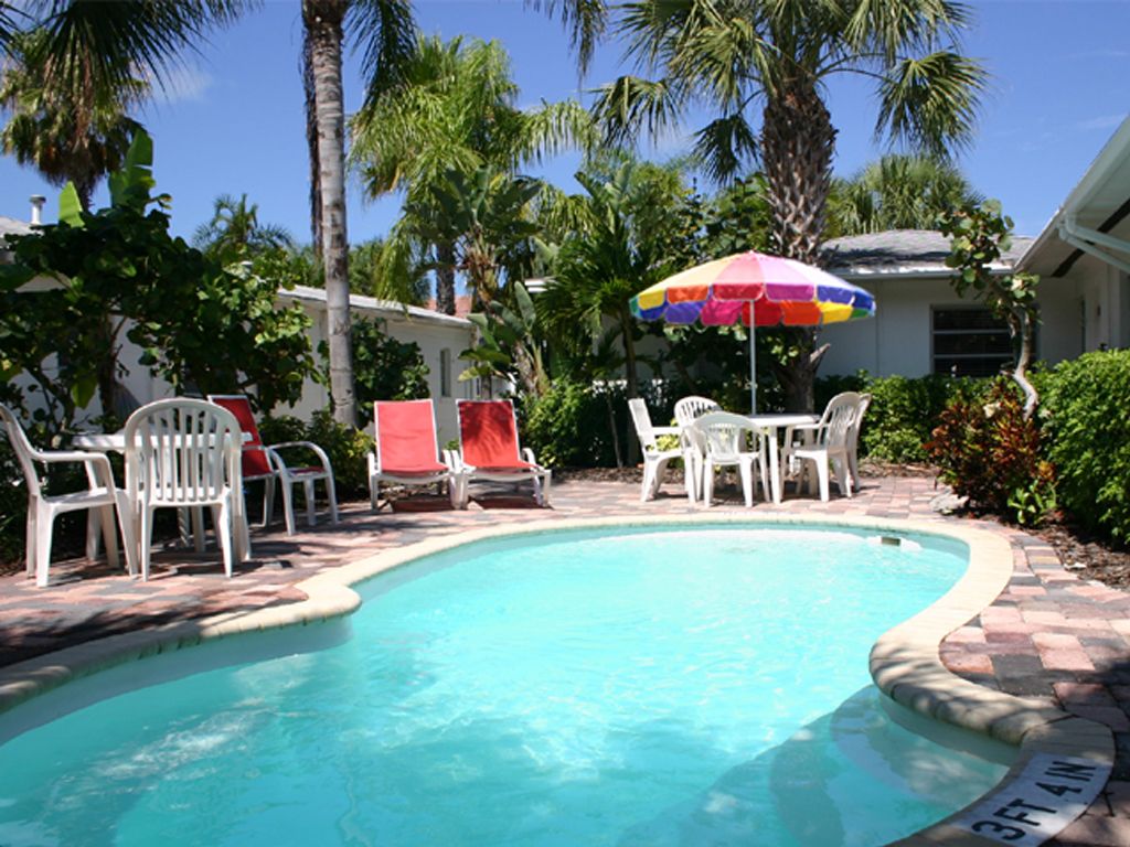These beautiful homes are landscaped together in a tropical garden, with palm trees and room for 2 heated pools, all very peaceful and private. We are two minutes walk to the beach. Unlike most residential homes we are very close to the shops, and restaurants, such as Frenchy\'s and the Palm Pavilion, listen to live music while watching the sunset, you will not have to worry about driving or parking your car, just leave it in our parking lot. Pier 60 is also very close, and famous for its Key West style sunset festival, which takes place every evening.